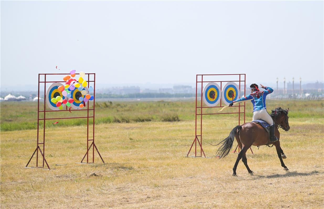 活動中,32位身著摔跤服的搏克手邁著沉穩(wěn)的“步舞”入場,4位弓箭手在駿馬飛馳中完成8箭射擊,馬背拾哈達考驗著騎手與駿馬之間的默契程度……這場小型那達慕雖精巧,卻集競技豪邁、藝術(shù)展現(xiàn)、生活溫情于一體,讓來賓深切領(lǐng)略獨特的文化魅力。