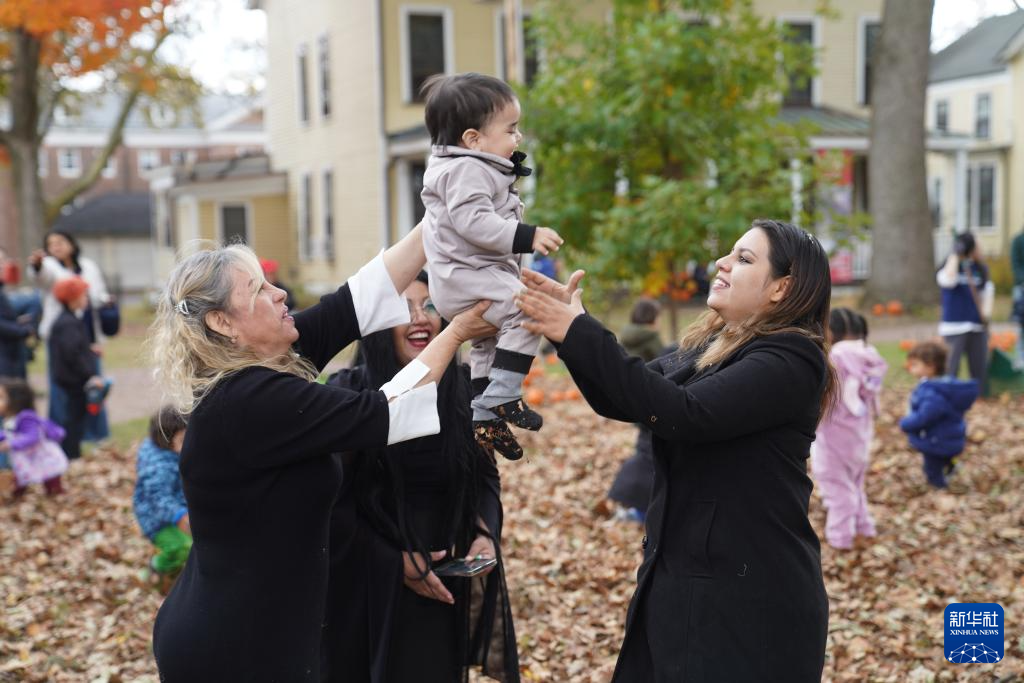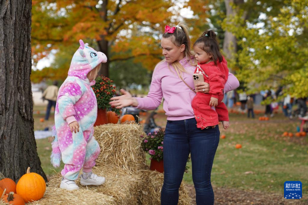 10月25日,在美國紐約總督島,人們帶著孩子參加秋日節(jié)。