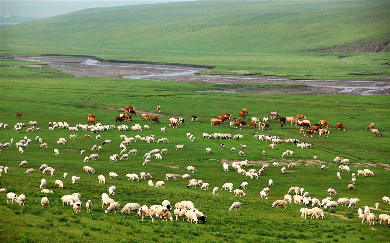 阿魯科爾沁旗草原上,牛羊自由自在地撒歡。